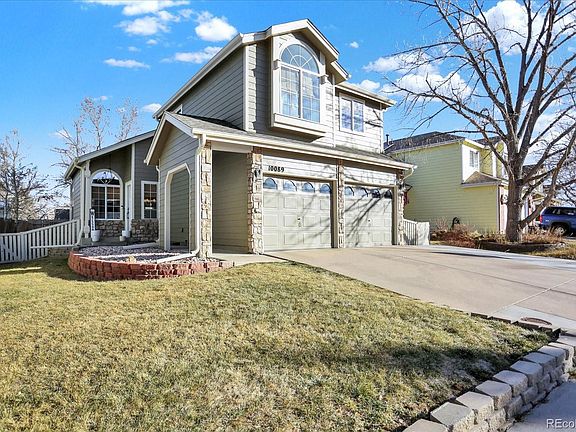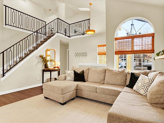 Welcome to 10089 Telluride St. where home means cozy, simple, and modern living in the foothills of beautiful Colorado. Just a 3 minute walk to the breathtaking views of the nearby ponds and walking trails, this home is nestled in the heart of the friendly Roxborough community. When you walk into this home you are greeted with the stunning custom staircase along with the open ceiling, perfect for hosting all of your loved ones. The modern kitchen with gold accents is open to the cozy fireplace room to enjoy on cold winter days. Kitchen includes stunning quartz countertops, new appliances, and access to a walk in pantry + a bonus pantry. The patio with smokeless fire pit is the most amazing space, especially in the summer, to spend your afternoons and evenings. The back patio is a new addition to the home and both the front and backyard had sod installed in 2021. As you make your way upstairs you are greeted with the most adorable loft + skylights. Brand new carpet in October of 2023. The primary room is spacious and welcoming with the vaulted ceiling, new carpet, and walk in ikea closet. It includes a spacious primary bathroom with double sink, new hexagon tile, and updated fixtures. Upstairs you can also find 2 adorable rooms for your kiddos or guests. Each room has new carpet and spacious closets. The guest bathroom features new vanity, floor tile, shower tile and bath fixtures. If the main level and upstairs is not enough for you, the basement is sure to impress. The basement has potential for anything you might need. With new carpet and the open space, it could be a large office or playroom, or both! Separate bedroom with access to the laundry room and another full bathroom. Lastly, do not miss the garage with storage, built-ins, and coated flooring. This home keeps giving!