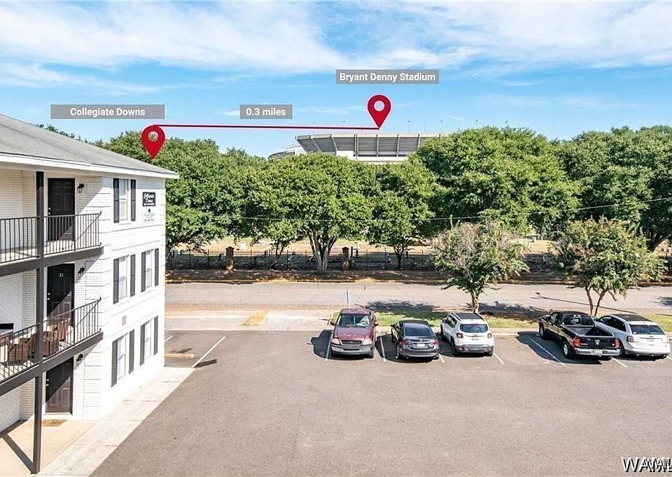 Discover this 3rd floor spacious 2BR/2 BA condo featuring granite countertops, stainless steel appliances and updated LVP flooring in the living space and updated bath vanities. This unit is located in the epicenter of UA's bustling campus at Collegiate Downs. Positioned on the same corner as Tutwiler, enjoy a view of the stadium right from the complex. Attend lectures or game days with a mere stroll; you're only 2 blocks from the action! Enjoy generously-sized bedrooms with their own bathroom and parking spot. HOA Dues of $179/M cover common area upkeep, building insurance, reserves, garbage, fire alarm, accounting, pest control, and HOA management. Photos are of similar unit.