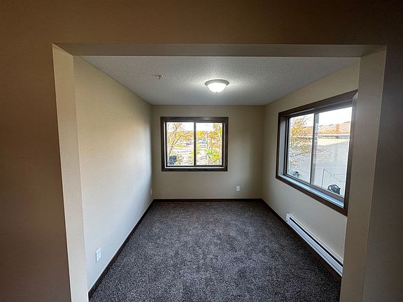 Welcome to our brand new 1 bed, 1 bath apartment located in the heart of Buffalo, MN. This corner unit offers a spacious and modern living space, perfect for those seeking comfort and convenience. Inside, you'll find a well-designed floor plan with custom cabinets, providing ample storage for all your belongings. The master bedroom features a walk-in closet, ensuring you have plenty of space for your wardrobe. Additionally, this apartment includes a bonus den, which can be used as a home office, study area, or even a cozy reading nook. One of the standout features of this apartment is the same floor coin-operated washer and dryer, making laundry day a breeze. No need to haul your laundry up and down stairs or wait for machines to become available. For those with a vehicle, there is the option to rent an extra garage space for an additional fee, ensuring your car is protected from the elements. Located nearby is a beautiful park, providing a serene and picturesque setting for outdoor activities or a leisurely stroll. This apartment is part of a new building, offering modern amenities and a fresh living experience. Off-street parking is available, providing convenience and peace of mind. Don't miss out on the opportunity to make this apartment your new home. With its prime location, thoughtful design, and desirable amenities, it's the perfect place to relax and unwind after a long day. Contact us today to schedule a tour and see all that this apartment has to offer.