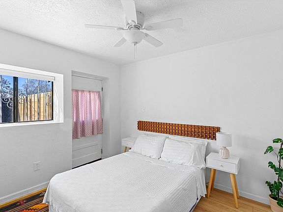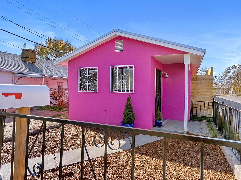 This adorable one-bed, one-bath home was tastefully updated in 2023, featuring a new metal roof, stucco, LVP floors, HVAC, kitchen, doors, fixtures and more. Located in the heart of downtown Albuquerque, this home steps to the Bosque, Biopark, close to Downtown and Old Town. Don't miss the chance to own this classic Barelas Adobe with spacious updated kitchen featuring Saltillo tiles and other charming details. Nice size lot with new tall fence that provides plenty of privacy and a gate for back yard access. The renovations make it an ideal starter home or great place to settle knowing you won't have updates for years to come. Must See! This Downtown gem won't last long!