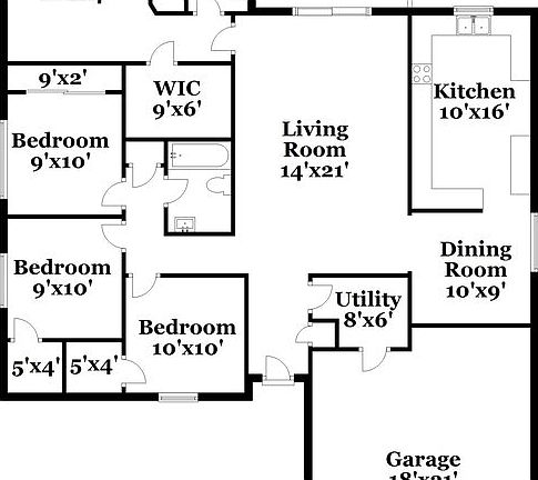Two-car garageFour bedroomsCeiling fanTwo bathroomsSoaking tubLight-colored wallsSolid-surface floors