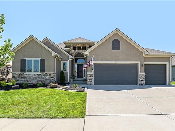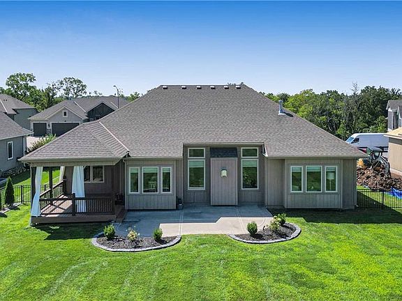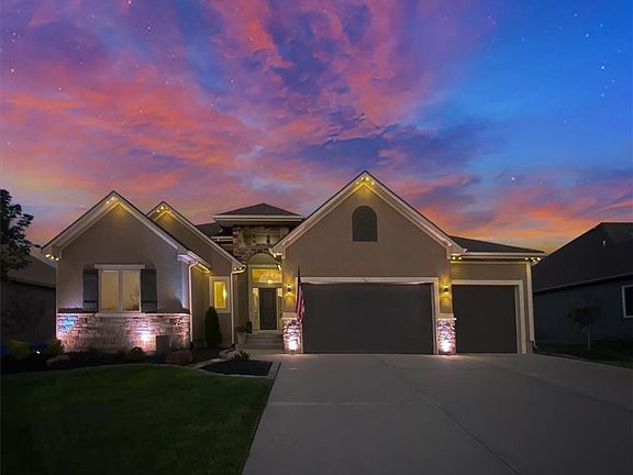 Welcome to this stunning 3-bedroom, 3-bath home located in the prestigious Edgewater @Creekmoor Estates, nestled on a picturesque golf course with a serene 109-acre lake. This property is a true gem, brimming with upgrades and modern amenities that cater to every lifestyle need. The master suite is a sanctuary with a stand-alone soaker tub and a luxurious walk-in tile shower. Step into the expansive kitchen, featuring an oversized island, granite countertops, a large walk-in pantry, and a convenient grocery door from the garage. The gas cooktop and the extended patio with a covered deck make this home perfect for both indoor and outdoor entertaining. The backyard, situated right on the golf course, is generously sized and enclosed with a wrought iron fence. Inside, enjoy the sophistication of window treatments and the convenience of a Sonos speaker system throughout the house, including the patio, all professionally installed. The amplifier in the basement, along with custom lighting throughout the soffits, can be controlled via an app, allowing you to set the perfect ambiance for any occasion, including displaying red and yellow for Chiefs games. The unfinished basement, featuring two egress windows and plumbing stubbed for a future bathroom, offers endless possibilities for customization. This home is not just a residence but a lifestyle, providing comfort, luxury, and ample opportunity for personalization. Don’t miss the chance to make this exquisite property your own.