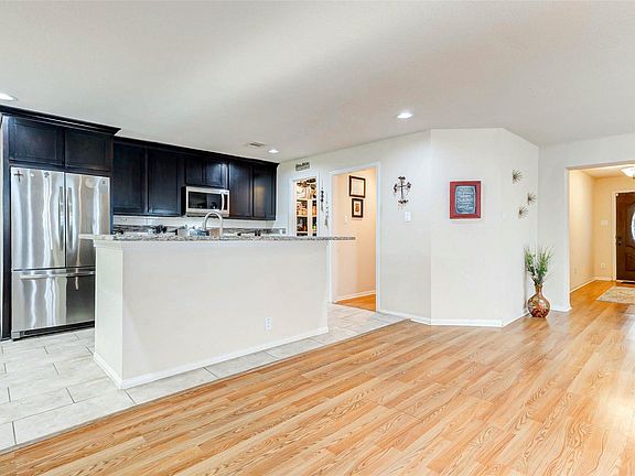 Welcome to this beautifully updated 4-bedroom, 2-bath home, perfectly situated on a spacious lot in a highly desirable location! With striking curb appeal and a thoughtfully designed layout, this home offers style, comfort, and functionality. Inside, enjoy attractive wood and tile flooring throughout, leading you to a stunning kitchen featuring granite countertops, abundant storage, stainless steel appliances, and an open flow to both dining areas and the inviting living room—ideal for entertaining. The private primary suite impresses with an ensuite bath complete with dual vanities and a sleek tiled shower. Three additional bedrooms and a second full bath are conveniently located down a short hall, offering comfort and flexibility. Step outside to a generous backyard with a covered patio, new privacy fence, and plenty of room to relax or play. The remodeled layout includes a dedicated laundry room while still providing garage access for excellent storage.