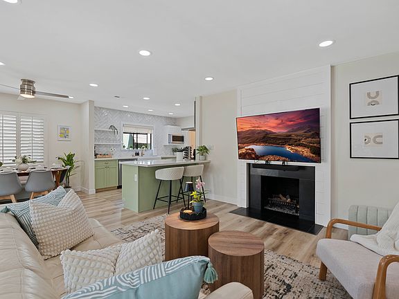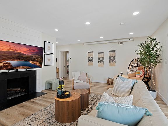 Step into our fully furnished and well-appointed home to discover a welcoming atmosphere that combines modern amenities with a touch of California charm. The living area is perfect for relaxation and features a comfortable sofa, egg chair reading spot, a variety of board games and a Roku Smart TV to stream all your favorite shows. (Please note: the fireplace is decorative and not available for use)