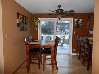 Best of both worlds! Country views w/city sewer & water. Move right in!3BR, 2BA ranch on a 1/2 acre lot in a nice subd. just south of town. Full bsmt includes newly finished Family Rm w/wet bar & built-in cabinets, storage rm & full bath. Eat-in KIT w/hdwd floor, snack counter & newer patio door to deck overlooking your spacious backyard. Newly remodeled bath w/ceramic tile. MBR w/walkin closet. Surround sound system thru-out. 1 car garage but room for a 2 car. No one across the street from you! Home Warr.
