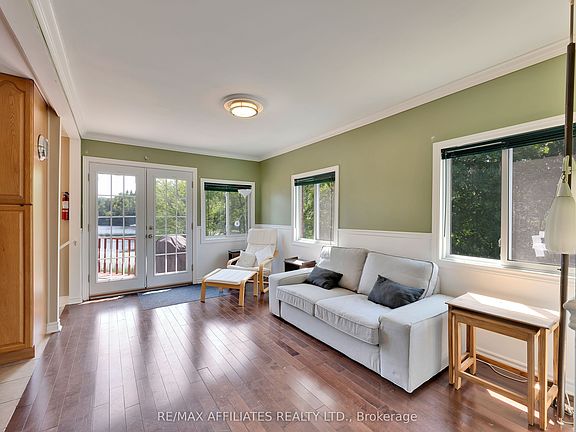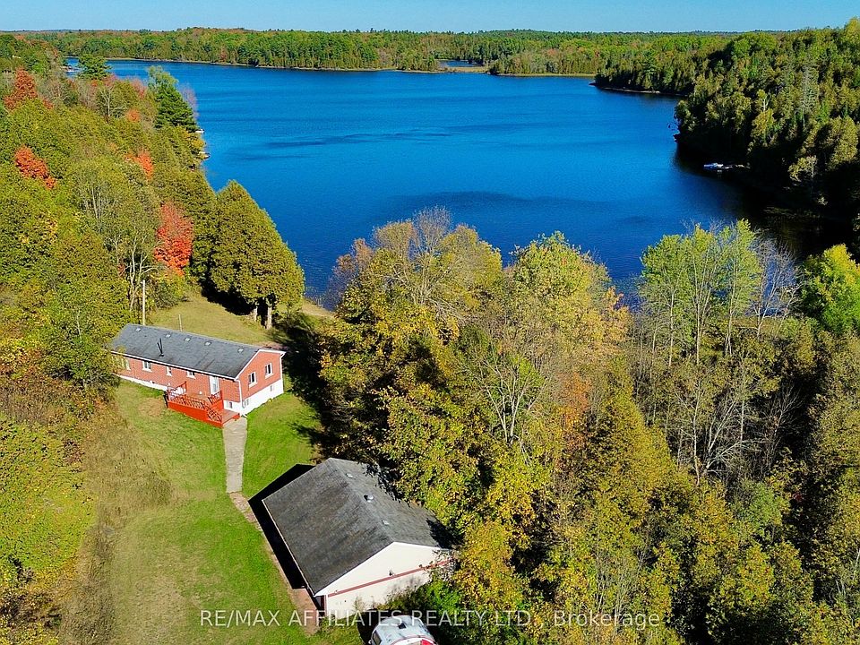 Welcome to your private retreat on the shores of Bull Lake. Nestled on 7.61 acres, this brick bungalow delivers the perfect balance of privacy, comfort, and true waterfront lifestyle with the bonus of a detached 3-car garage. The main floor features a spacious entrance, multiple sitting rooms with beautiful views of the water, a bright dining area, and a convenient 3-piece bath. You'll also find a comfortable bedroom, warm hardwood floors, and a thoughtfully designed kitchen with a central island - an inviting space for both everyday living and entertaining.The lower level expands your options with an office, second bedroom, and utility space. Outside is where this property truly shines. Start your mornings with coffee and views of the lake from the expansive deck, spend afternoons swimming or casting a line, explore the property, and finish the day gathered by the fire under a sky full of stars. With panoramic views in every season, you will enjoy autumn colours, winter serenity, spring renewal, and endless summer fun all from your own backyard.This is more than a home its a lifestyle. A rare opportunity to own acreage, privacy, and year-round waterfront. Whether you're seeking a permanent residence or a four-season retreat, this property is ready to welcome you home