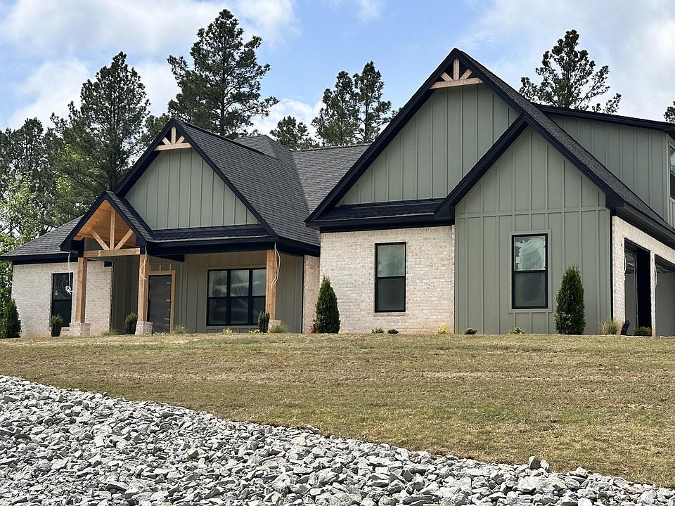 Spacious new home perched on a 2-acre lot with stunning views. New subdivision with future gated access. Home offers 3 bedrooms, 2.5 bathrooms with an office on main level. Bonus room/4th bedroom with full bathroom above garage. Zoned for Benton's newest elementary school, Mountain View Elementary. Living room features vaulted ceiling with beautiful wood beams, stone wood burning fireplace highlighted by built ins and floating shelves. Open concept living provides large kitchen, walk in pantry, and dining space. Primary suite separate from other bedrooms. Large primary bathroom that offers split vanity with makeup counter, free standing tub and pass through shower. Primary closet has laundry access. Three car garage, large outdoor covered patio with additional fireplace and tons of yard space to add your future shop or additional outdoor amenities. Elegance meets country living! 10 minutes to I-30, 30 minutes to Hot Springs Village, and less than 30 minutes to Little Rock. This beauty will be ready for new homeowners early July! Agents see remarks