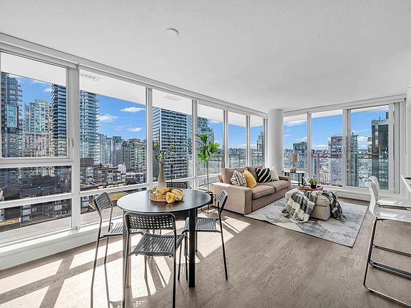 Step into the sky at Modern — where architecture meets light, and every window frames the soul of the city. This nearly 1,000 sqft Air-conditioned corner home at 1009 Harwood St offers 2 spacious bedrooms, a functional den, and a bonus flex room — bathed in natural light from 180° floor-to-ceiling windows. Wake up with the sunrise to the east, unwind with golden sunsets to the southwest, and watch the city pulse beneath you. From the dining room and second bedroom, catch glimmers of the water — a daily reminder that you live somewhere truly special. Tucked in the vibrant West End, just steps to beaches, boutiques, and the best of downtown, this home is more than a place to live — it’s a place to feel alive. Comes complete with A/C, parking, and storage. Come see it. Stay for the view.