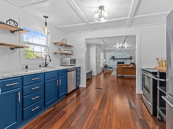 Remodeled ranch homeModernized bathroomSpacious bedroomsUnique ceiling detailsCozy wood-burning fireplaceScreened-in porch