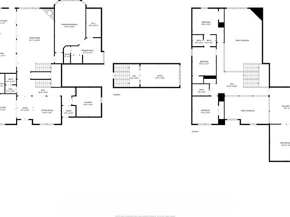 The second level serves as a unique half-level office, ideal for working from home or creative projects. On the third level, discover the remaining bedrooms along with an impressive theater room and billiard room, offering the perfect setup for movie nights or game days.