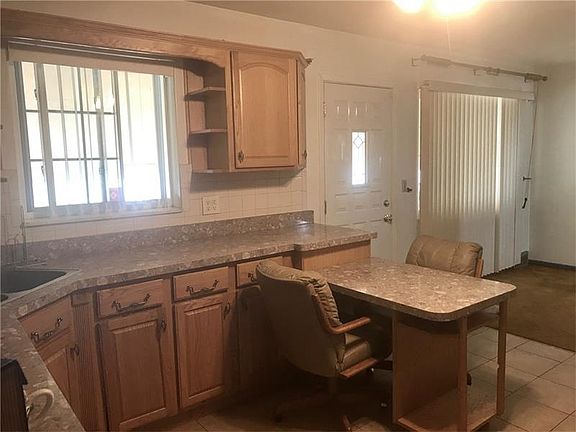 Brick ranch home with 2 bedrooms and one floor living. Also the gem in this home has to be the covered patio and a pool on level back yard. The back yard is completely fenced in. Great for kids and for privacy. Make this your home yours this summer and enjoy the hot summer days swimming. Seller is putting a new bathroom vanity in but not done yet.