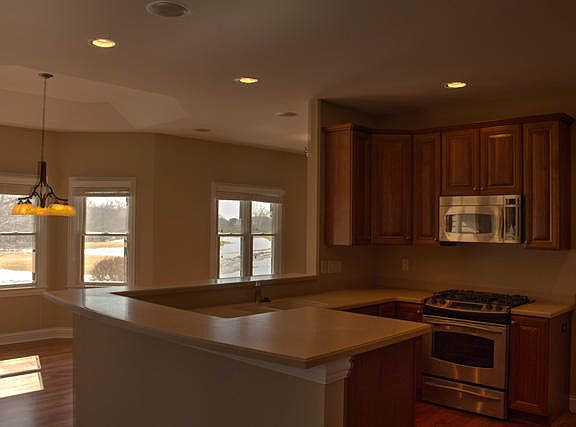 Brighton Model on the par 3 8th hole of the Palmer course. Sit in the screened in porch and enjoy the view of the pond guarding this tough little hole. Southern exposure for a bright home. Open great room with an extra large dining area, breakfast bar all overlooking the fireplace. Master Suite with large walk in closet and a separate tub and walk in shower. Full basement finished with a giant rec room and a 4th bedroom and bath. This is a great home for summer, full time or retirement.