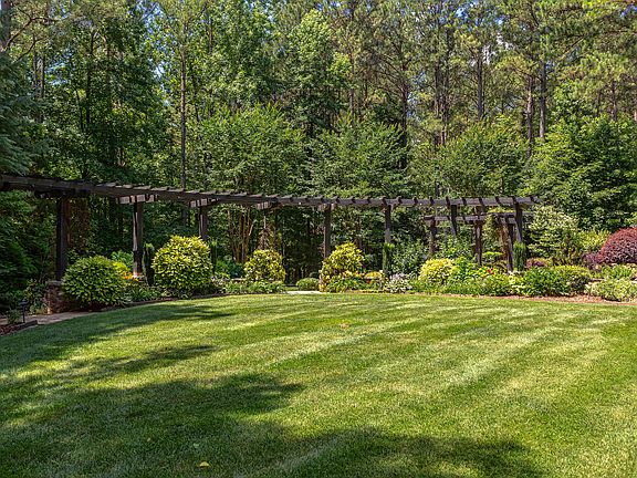Nestled on a beautifully landscaped 1.84-acre lot in Raleigh's sought-after Barton's Grove, this meticulously maintained 5-bedroom, 4.5-bath custom home by Dickerson Homes offers the perfect blend of luxury and livability. Designed for both everyday comfort and exceptional entertaining, it features an expansive kitchen and dining area, a finished basement with rec room, home gym, and sauna, plus a screened-in porch with fireplace and TV, covered patio, and hot tub. The spacious primary suite boasts a spa-like bath with walk-in shower, dual vanities, and a custom walk-in closet. With a 3-car garage and generous storage throughout, this home is an ideal private retreat for families and entertainers alike.
