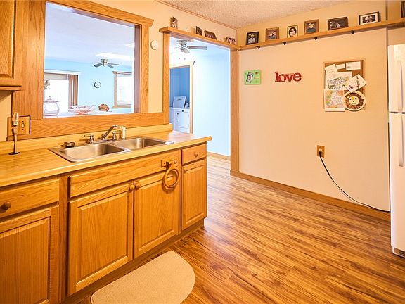 Lovely ranch home with unique features. Great north side neighborhood with 3 bedrooms and 1 large bath, spacious kitchen with lots of cupboard space.Fresh paint and new laminate flooring throughout.Large tandem garage with large workshop and lots of storage space. Tornado shelter in garage. This house is in move in condition, come take a look.