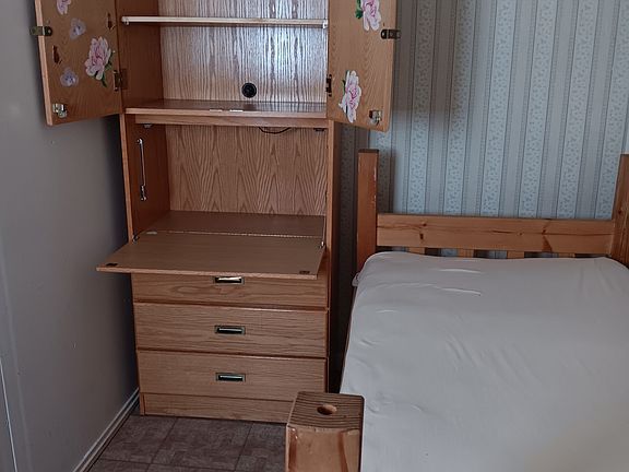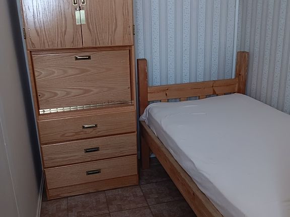 This is a room for rent. Kitchen and Bathrooms are shared. This room is downstairs and one wall does not go all the way up. This is why the rent is affordable. The wall goes up 8 ft.