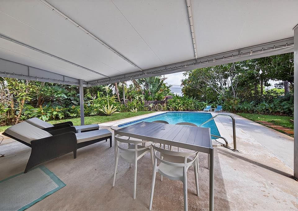 Tranquil pool home with lush, tropical private back yard and large (15’ x 30’) heated pool. Set on 8,876sf of professionally landscaped, spacious property, enjoy life poolside on the covered patio. Front Florida room leads into the recently renovated open kitchen with quartz countertops and plenty of storage space. The bathroom was also recently renovated with a convenient walk-in shower. Both bedrooms have direct access to the back patio via impact glass sliding doors. Restored terrazzo floors throughout the home. Sewer lines replaced all the way to the street with PVC in 2019 and new electrical panel with buried electrical service. Wonderful location -- easy to get to Wilton Manors or to NE 13 Street corridor, and only 1.5 miles from Fort Lauderdale beach. Come feel the relaxation!
