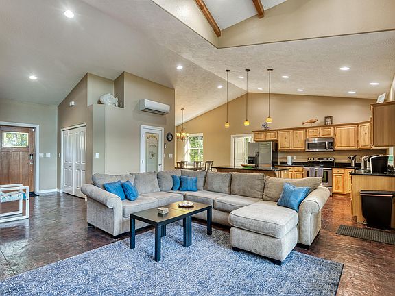 MUST SEE!! This beautiful 4 bedroom 2.5 bathroom home has vaulted ceilings, heated concrete floors, which makes it environmentally friendly and reduces energy costs. There's also built in insulation which helps to keep consistent temp. Kitchen has granite counter tops, plus many more perks. This home was built to withstand the most severe conditions and is extremely energy efficient. With covered deck and spacious patio you can entertain to your hearts content, soak in the hot tub or just relax in your own piece of paradise. Appliances: Water Heater: Electric; Dishwasher; Washer/Dryer: Electric; Range/Oven: Electric; Microwave; Cooktop: Electric; Refrigerator; Window Coverings; Furnished: Yes