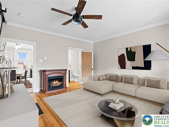 Adorable Renovated Brick Semi-Detached Twin in the Heart of Fountain Hill! LOW TAXES & GREAT VALUE!! This Charming Home welcomes you with a Cozy Covered Front Porch. Step inside to a warm, inviting interior featuring a natural gas ventless fireplace, gorgeous hardwood floors, high ceilings and a comfortable flowing layout. The first floor offers a bright living room, convenient half bath and an open-concept kitchen/dining area with tile flooring, stylish backsplash, stainless steel appliances and tons of natural light! Easy access to the fenced backyard makes outdoor dining and entertaining a breeze, complete with a grill, shed, and hammock... all included! Upstairs, discover a fully remodeled bath with honeycomb tile and modern shower surround, plus two spacious bedrooms—one with dual closets and a bay window, the other with built-in shelving. A third room suitable as a home office, dressing room, or nursery completes the second floor. The finished lower level has endless opportunities, providing additional flexible living space with fresh paint and recessed lighting, ideal for a family room, recreation area or creative studio. All this in a prime location... walking distance to St. Luke’s Hospital, Lehigh University, Parks, Restaurants, and the Vibrant Southside Bethlehem Historic District. Easy Access to Routes 378, 22, 78, 145 and ABE Airport. A Perfect Blend of Charm, Comfort and Convenience! Schedule your Showing Today and don’t forget to Ask for the List of Upgrades!