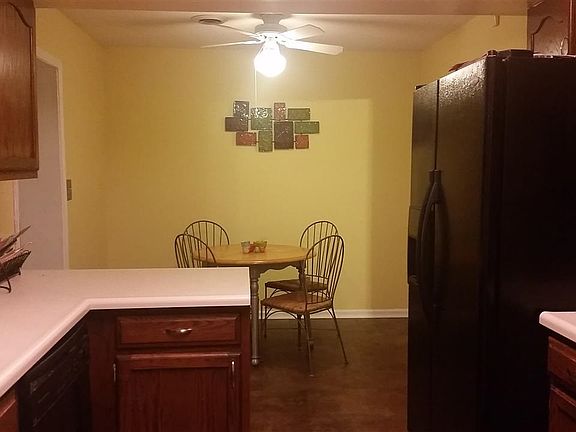 4b 2b Brick home in the city limits. Features include, 2 living areas, 2 covered porches, fenced in yard, metal roof appx 10 years old, eat in kitchen, utility room, dishwasher & microwave, new flooring in kitchen, fresh paint, newer light fixtures/ceiling fans, walk in shower with built in seat and handicap toilet, and 2nd bath has shower/tub, den wired for gas, recessed lighting with dimmer switch, track lighting in large master bedroom, newer tilt windows, additional concrete patio area with outbuilding