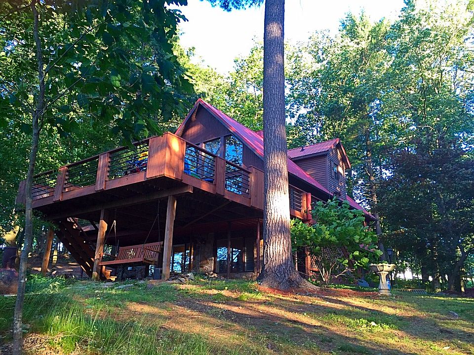 Price reduced to $199,900!! This spectacular home wont last long at this price! Are you looking for a private getaway or a forever home in the mountains surrounded by nature with a view? Well look no further. This A-frame home sits on a bluff over the Juniata River offering views of the river and countryside. Conveniently located less than 5 miles from town this home offers 3 bedrooms, 3 baths, multi level stone fireplace, great room w/ cathedral ceiling, finished basement, large deck, internal garage, shed, paved driveway, river frontage, and much more!