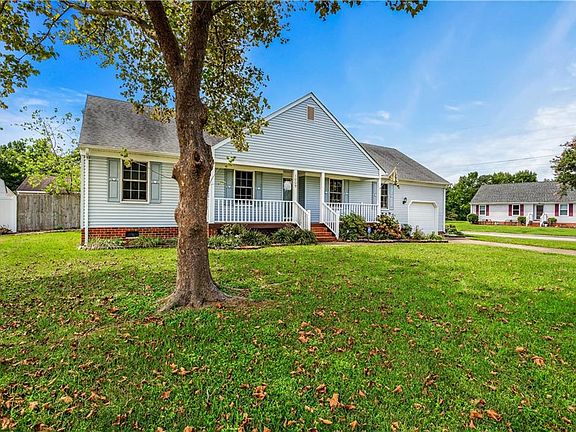 Charming ranch home situated on a spacious corner lot in a desirable Chesapeake neighborhood! Step into the large great room featuring a cozy brick gas fireplace, perfect for relaxing evenings. The generous primary bedroom boasts a beautiful bay window, while a finished room over the garage provides extra space for your needs. Enjoy formal dining in the dedicated dining room, and take advantage of the huge pantry in the kitchen, which is complemented by sleek wood laminate floors and new luxury vinyl plank (LVP) flooring. The freshly painted deck, pergola and fenced yard offer an ideal outdoor space. The kitchen includes a brand new dishwasher, refrigerator and garbage disposal, along with a newer range, microwave and water heater. Conveniently located in a prime central area! Schedule your showing today!