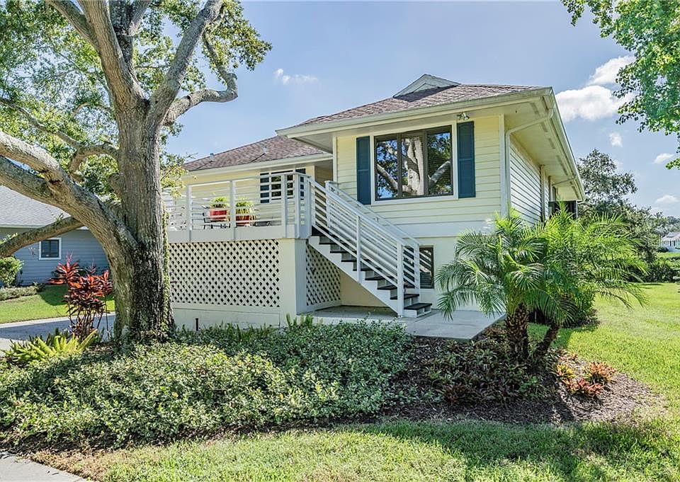 Stunning Key West style home w/ water view! This immaculate home is turn-key with an expansive panoramic view of Lake Avoca from the huge air conditioned FL sunroom & 1st level screened porch -added January 2017. With Lake Avoca in your backyard you have direct access to the Gulf by kayak or canoe. L-shaped living room has a floor to ceiling windowed corner overlooking the lake & sun room, a beautiful cathedral ceiling, oak flooring, custom drapes & crown molding. Large eat-in kitchen w/ butcher block top island, stainless steel appliances, instant hot water dispenser, 2 pantries, oak floor, recessed lighting & custom window treatments. Master suite opens to the Florida room, has a sitting area, large walk-in closet, oak floor, plantation shutters, & view of the lake. Its en suite bathroom has custom solid cherry vanity & oversized seamless walk in shower. This 448 sq ft L-shaped Florida room with glass wall, cathedral ceiling, a/c, has access through a hurricane proof door to the open balcony. On the lower level is the garage, workshop, large store room, laundry/storage room & bonus room with French doors to huge L-shaped 726 sq ft screened porch. More: Ring visual doorbell, large storage area under front deck, attic flooring, 2 access points to attic, 3 a/c units, custom drapes. Low HOA, community heated pool, clubhouse with numerous amenities, lawn maint., mangrove trimming, & more. Great community! AS/IS for seller's convenience. Close to Fred Howard Park, Tarpon Springs Historical District and Sponge Docks, Gulf Beaches, numerous restaurant and shopping opportunities, golf courses.