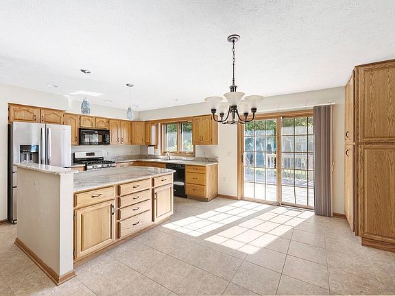 Lovely deckOffice spaceCorner lotOpen concept kitchenBackyard lined in trees