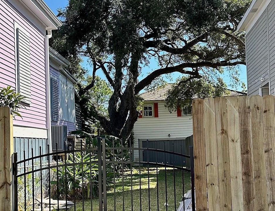 Nice small home. Former Garage Apartment with alley and Garage access. Large completely fenced front yard with accesss to Sealy Street. Lots of room to expand or build.