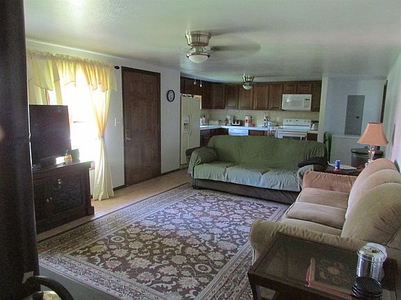 3 Bedroom, 2 bath home sitting on 5 +/- acres with a pond. Lots of trails for exploring! House was rebuilt from studs in 2010. Wood heater in living room. Storage building stays.