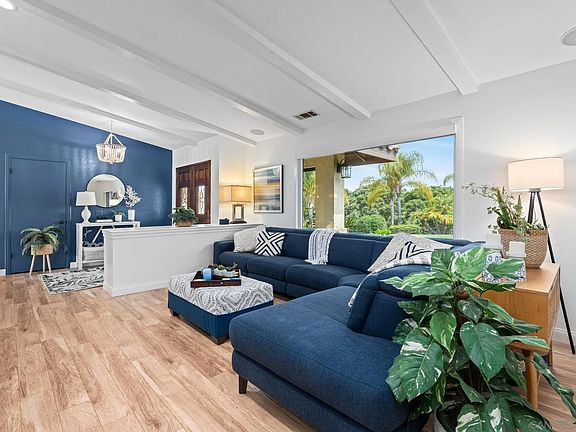 Pictures just added! 3D virtual tour available to tour property from your home! Custom-built by Souther Construction in 1987 and lovingly maintained by its original owners, this single-story 3BR/2BA home sits on a quiet cul-de-sac in a serene, private setting. Located on a full 1-acre lot with southwest-facing views, the property offers 2,227 SF of living space, a 3.5-car garage, and a long list of thoughtful upgrades that blend timeless design with modern comfort. The spacious primary bedroom features a walk-in closet and a beautifully updated bathroom, complete with a floor-to-ceiling tiled shower. Major improvements include a newer $40K brick paver driveway (2022), all new dual-pane windows, a $21K roof update with double paper and added ventilation, epoxy-coated garage floors, and a built-in sound system in the living room and patio. The meticulously landscaped grounds feature drought-tolerant plantings, mature fruit trees (avocado, orange, and more), and a private backyard with a beautifully refinished pool and spa—$18k in upgrades within the past year, including new heating and pump equipment. A level area at the end of the extended driveway offers a prime location for a future ADU. In 2021, the Summit Trail homeowners jointly spent $41K to repave the private street for the first time since its original construction in 1986—an improvement that shouldn’t require attention again for many years.