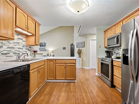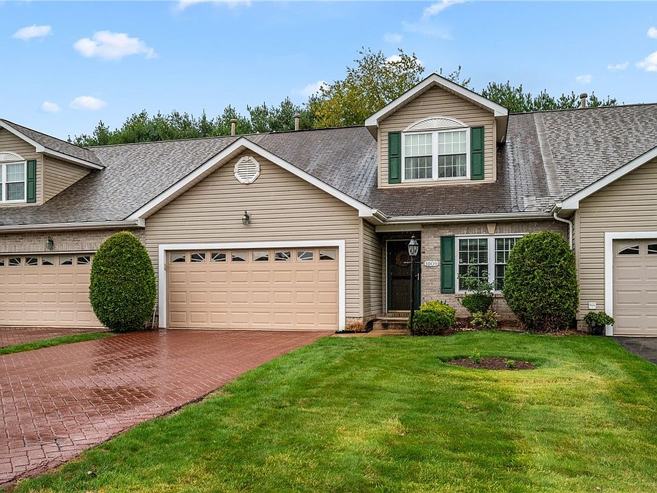 Charming Carriage Home with level entry and one floor living space! Two-story vaulted ceilings with skylights in the lovely Foyer. Fabulous Kitchen with an island, beautiful backsplash, and stainless steel appliances. The spacious living room with a corner gas fireplace looks out on the back patio and private yard. The main floor primary bedroom is complete with a generously-sized bathroom and a walk-in closet. The main floor also has an additional room that could be used as a bedroom or a den, and a laundry room that leads out to the 2-car garage with tons of storage space. and an additional room that can be a den or bedroom. The second floor has a huge open loft space with a built-in desk that could be a terrific workspace or entertainment area.