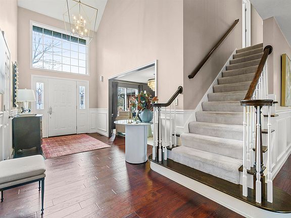 This is the Bennington Park property of your dreams! This exceptional 4 bedroom, 2.5 bathroom home sits on 1.7 acres of usable land and is ready for new owners to call it home. You are greeted by the feeling of space and elegance as soon as you enter the front door into the dramatic double-height foyer, giving you a glimpse of new hardwood flooring, fresh interior paint, and designer light fixtures. Directly off the foyer is a great flex space that can be used as a formal dining room, office, or den. The main gathering area of the home is the huge great room with 20-foot cathedral ceilings, gas log fireplace, and arched windows with views of the back grounds. Those views continue in the large eat-in kitchen with refinished white cabinets and large island/breakfast bar. The bonus sunroom off the kitchen was recently converted to an all-seasons room to be enjoyed throughout the year. Also off the kitchen is the new laundry/drop-zone area with built-in lockers. The stunning main floor primary suite features a completely reimagined ensuite bathroom and dressing area with custom built-ins and exquisite finishes. Moving upstairs, you'll find 3 additional huge bedrooms and full bathroom. The lower level features an open area perfect for additional living space, along with usable storage. The back deck was redone in 2022, offering great outdoor entertaining and a gateway to the huge backyard. New roof in 2018. Hurry and schedule a private tour of this gem today!