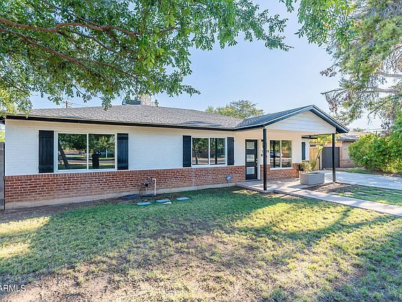 Nestled in the heart of Central Phoenix, this charming red brick home seamlessly blends timeless style with modern updates. Featuring 3 bedrooms, 3 bathrooms, and a versatile den/office/bonus room, the space has been thoughtfully upgraded to offer both comfort and functionality. Highlights include a cozy wood-burning fireplace, fresh neutral paint, new bedroom carpets, and an open kitchen with a quartz island, perfect for entertaining. The expansive living room, extra-large laundry room, and OWNED SOLAR add to the home's appeal. Enjoy the serene outdoor space with mature shade trees, a grassy front and back yard, and a convenient location just minutes from freeways, downtown, light rail, hospitals, and shopping. This home truly offers the best of Central Phoenix living!