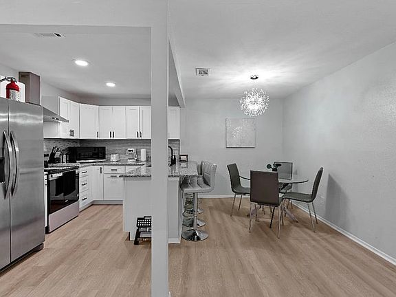 Welcome home to this charming first-floor unit nestled in a quaint single-story fourplex. This freshly remodeled 2 bedroom 1 bath unit has an open living room, dining room, and kitchen. Relax and watch the game or favorite TV show on the 85" living room TV. The larger bedroom has a king size bed with TV and desk. The smaller room has a bunk bed with queen size mattresses. Kitchen is equipped with stainless steel appliances.