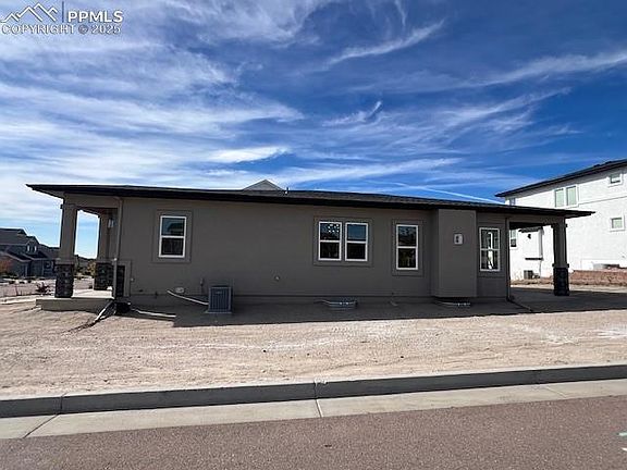 Come home to this amazing new build in highly desirable Wolf Ranch. This home is situated on a corner home site near Briargate Parkway and Powers Blvd where there is an abundance of shopping, dining and entertainment choices within 5 to 15 minutes. The first thing you notice when you're in front of this awesome home is the front entry with the covered porch. As you step inside and start your journey you will be impressed by the 10' high ceilings which make the home feel larger and more spacious. Tucked away in the entry hall is a bedroom and a 3/4 bath with a full size tiled shower. Moving on into the home you come to a great room with a dream kitchen that will delight any gourmet cook. The kitchen has stainless steel appliances. There is a large center island (with lots of storage) that has an undermount sink. The kitchen also has upgraded granite counter tops. The great room, which has plenty of windows to bathe the entire space with lots of natural light, includes a dining area and a living area with a gas fireplace. Just off the back of the great room is a large covered porch. The primary bedroom, located just off the kitchen - with its own little entry hall - is very private at the back of the home. The real treasure is the primary bath. There is a stand alone soaking tub, a dual vanity, a private enclosed toilet area (it's always nice to have a little privacy when mother nature calls) and last but certainly not least is an oversized, tiled walk in shower that you have to see to believe. The 3 car garage has an 8' tall garage door to allow a large SUV or tall Pickup Truck to easily fit in this space. Have an EV or want to get one? No problem. There is already an EV charger installed. Downstairs has 9' ceilings everywhere which makes the huge 22' x 31' family room and bedrooms feel even bigger. There is a full size wet bar in the family room with a sink and spot for a full size refrigerator. Finishing out the downstairs are two large bedrooms, and a full bath.