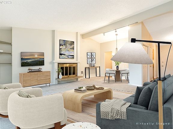 Welcome to this lovely single-level, end-unit condo with vaulted ceilings throughout making it open and airy. The spacious living and dining areas are filled with natural light from the large window and sliding door that opens to your own, covered back patio-perfect for relaxing. A cozy fireplace adds warmth and charm to the living room, creating the perfect place to unwind. The HOA fee includes POOL access, garbage, sewer, water as well as exterior maintenance and landscaping making life here fun and low maintenance. Your new home comes with parking spot #12 and an on-site storage unit. Plus, all appliances are included! Ideally located, and tucked off-of the main road, this tranquil condo complex offers the perfect balance of convenience and serenity with its easy access to HWY 217 & 26, OHSU, Nike, Intel and highly rated schools. Grocery stores, parks and local amenities are all close by too. Don't miss out on this gem!
