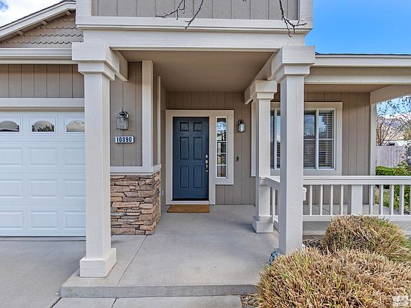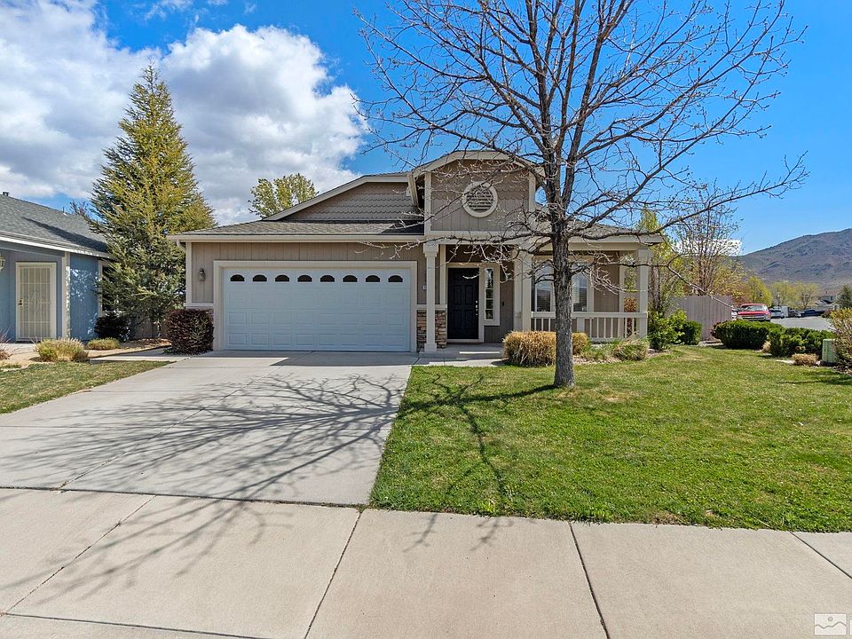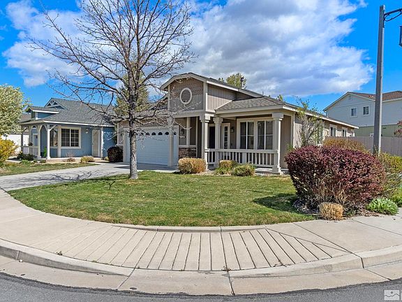 Come check out this newly available single story home in the highly desirable area of Damonte Ranch in South Reno. Tastefully painted inside and offset with white baseboards. Upgrades galore including Pergo laminate flooring throughout the home, granite countertops, island/breakfast bar and backsplash, Maple cabinetry, stainless steel hardware and kitchen appliances, 2-inch faux wood blinds, vinyl tile flooring in bathrooms, newer fixtures and more!, Ceiling fans in great room and each bedroom. The floor plan is open with cathedral ceilings in the kitchen overlooking the family room plus front dining/living/playroom. Fabulous backyard with an extra-large patio that wraps around the South side of the house giving you unobstructed views of Slide Mountain/Mt. Rose Ski area, the Sierras and the Virginia Range, plus a cement walkway along the entire North side of the house. Hot tub/spa hookup also on the North side of the house. Irrigation system covers front/backyard. Seller would like a very happy buyer and has recently conducted a home inspection for review and has spared no expense repairing, replacing and/or adding the recommendations and callouts within the report. Back fence is newly painted and concrete patio power washed. Seller will be installing recommended rain gutters in late May. Extra bonuses living in Brittany Meadows include great school zoning, Damonte Ranch Park right next door with acres of greenbelt and wetlands, miles of walking/biking paths, huge children’s park, play area, swings, basketball court, gazebo, benches plus spectacular views. In close proximity to grocery/ retail shopping and dining at the Damonte Town Center, and South Town Crossing and the Summit Mall/Century Theatres. Near the Veteran’s/SouthEast Connector, Virginia City, Mt. Rose Ski Resort plus Lake Tahoe while still being just minutes from Downtown Reno and the airport.