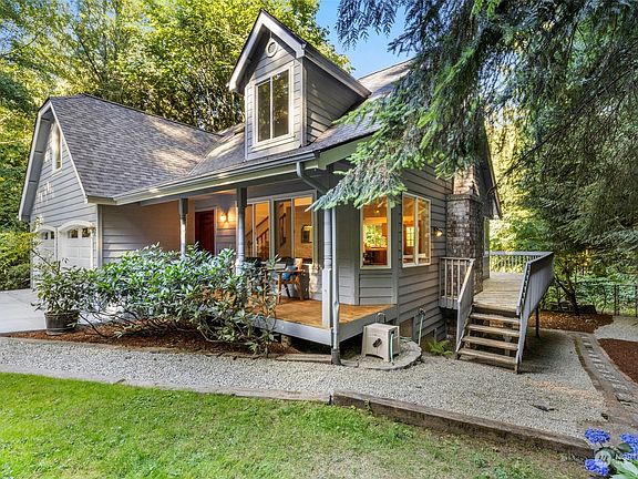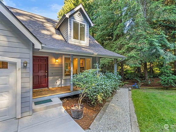 Welcome to your very own island retreat! Nestled on a serene half-acre lot this charming 3 bedroom, 2 bath home offers a perfect blend of comfort & convenience, sprawled across 1,700 sqft of living space. Features include beautiful hardwoods, vaulted ceilings, open living & dining areas, spacious kitchen w/SS appliances, AC, and a main floor primary suite. Two sizeable bedrooms upstairs w/ a bonus sitting room and an expansive partially finished basement with 8' ceilings underneath. Relax or entertain outdoors on the large backyard deck or sip your morning coffee on the covered front porch. Situated on a private road yet only minutes from the Bainbridge Island ferry, top-rated schools, and a variety of shopping and restaurant options.
