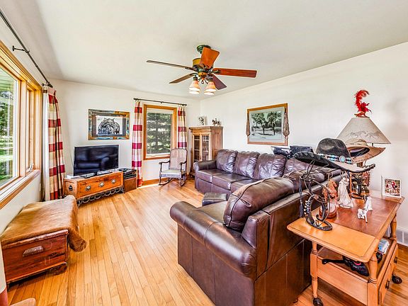 Nestled on 1.54 acres this ranch home offers both space and tranquility. Open floor plan with hardwood floors throughout. Custom updates throughout including kitchen with hickory cabinets, corian countertops and breakfast bar. Spacious primary bedroom with full bathroom and walk-in closet. Full basement awaiting your finishing touches. Detached 44x60 Pole Building with a new roof provides ample space for workshop and storage. Partially fenced yard. Plenty of room to expand or build another building. Zoned A-1. Don't miss out on the opportunity to call this exceptional property your own - schedule a viewing today and discover the endless potential it holds! **NEW plumbing in pole building bathrooms & Hot water heater!! **