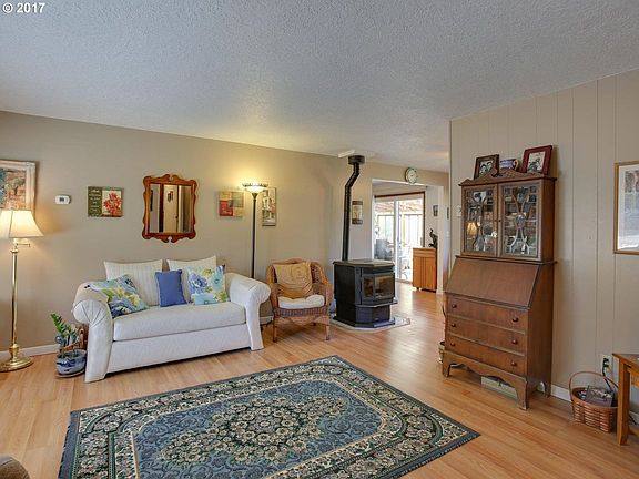 Great one level, 1556 sqft, ranch. 3 Brdrm, 2 bath with living room w/pellet stove & family room with wood fireplace insert & slider to covered back patio. Large Master suite w/3 closets. Well maintained home, move in ready. On 2 beautifully landscaped acres, mature trees & bushes, garden, fruit trees, berries. 24x40 Metal shop w/separate electric meter &cement floor. 24x36 Red pole barn with power, 2 car attached garage.