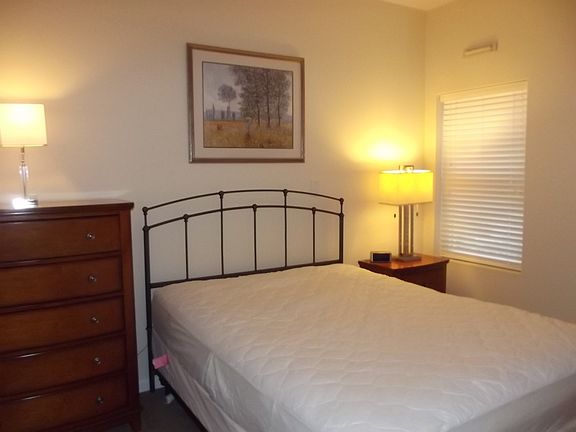 Fully furnished, full kitchen, necessary kitchen items, i.e., cookware tableware; typically 2-queen beds, in-unit washer/dryer, TV vacuum iron, etc. One assigned parking space. Abundant guest parking. Utilities (electric and water) included in rent.