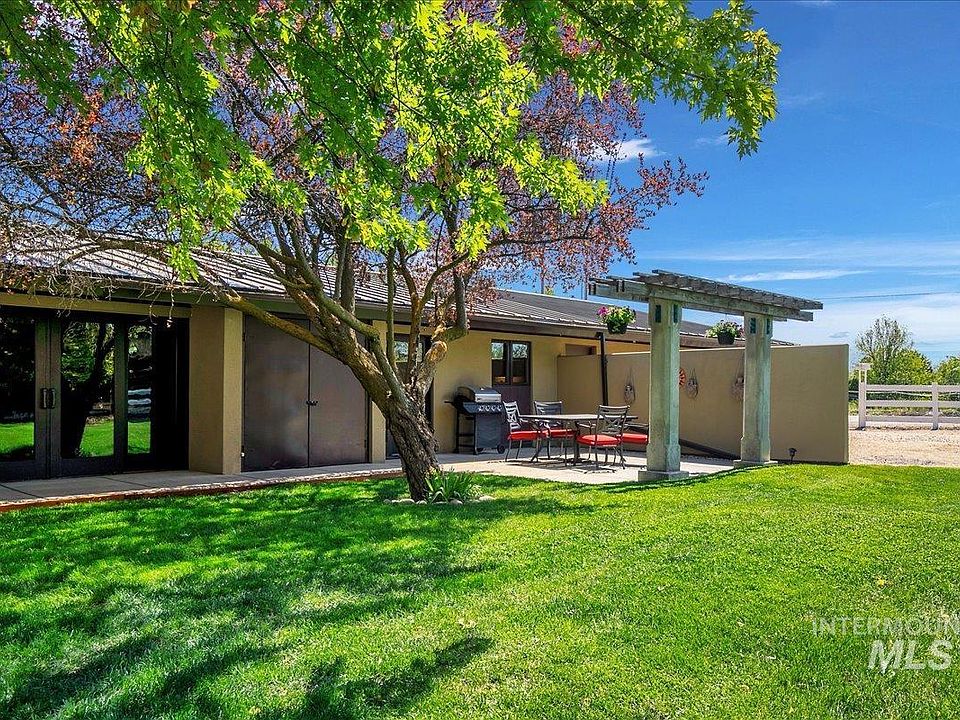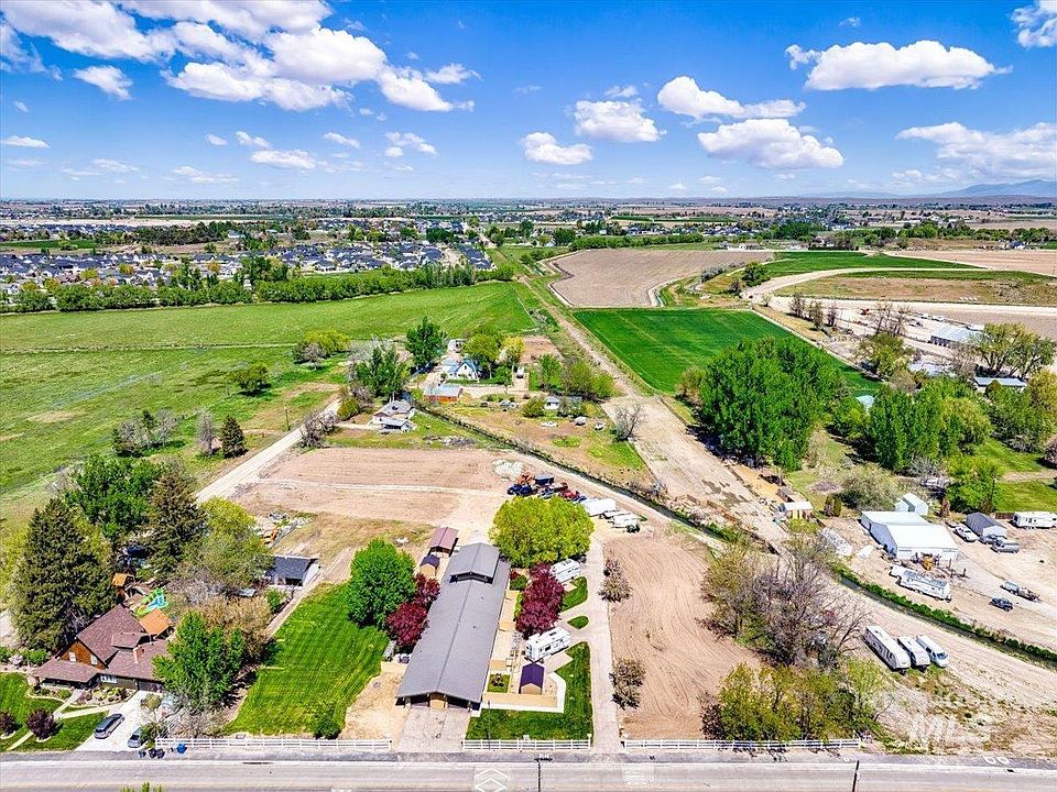 Architectural gem on 2.62 acres in Middleton, blending Frank Lloyd Wright and Japanese design. This custom duplex features private patios, courtyard gardens, Pella windows/doors, and artistic touches like internally lit soffits and vaulted ceilings with bamboo-embossed glass. Unit 103: 3 bed/2 bath; Unit 101: 2 bed/1 bath—both with oversized 688 sq ft garages and additional storage rooms. Durable stucco exterior, exposed beams, metal roof with 3:12 pitch, and no CCRs—bring your animals! Includes 3 RV hookups, one storage shed per unit, one shared garden shed, and a separate garage (4 total outbuildings.) The original architect planned to expand with multiple additional units—main water/sewer line trunks are in place, and blueprints w/ preliminary plat map remain. (Massive potential for development; Adjacent .26 acre parcel is also available.) Enjoy this quiet oasis in beautiful Middleton with access to outdoor adventures, vineyards, the Snake River, and the convenience of Boise just a short drive away!