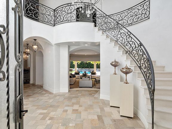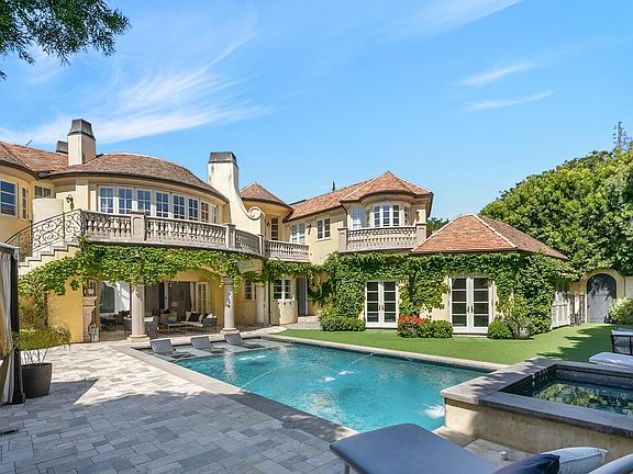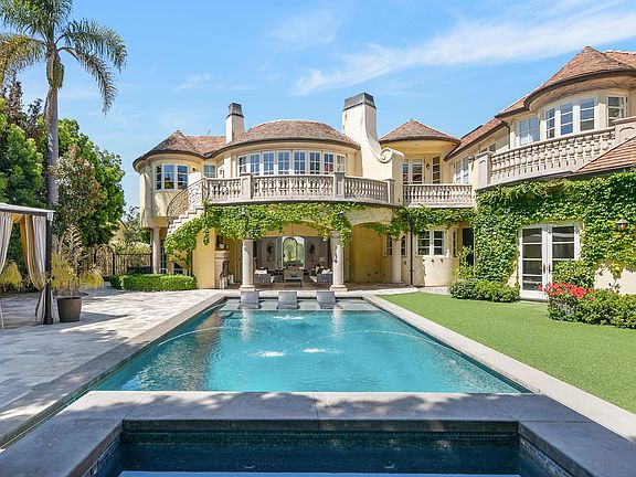 Encapsulating an unmatched level of grandeur, this gated corner French Estate showcases double-height ceilings, custom design, and high-end finishes throughout. The front door opens into the beautiful entry with a retractable skylight and intricate staircase. Around the corner, the stately dining room leads out to a tranquil courtyard while the opposite side reveals a formal living room. Centrally-located to the kitchen and office is a luxuriously appointed family room offering views across the pool with baja deck and spa. Gracing the upstairs master suite is a spacious spa-like bath, walk-in closet, and glass doors that lead out onto a sprawling terrace overlooking the yard. The lower level features two spacious, en-suite bedrooms, a walk-in wine cellar, gym studio, screening room, and large game room enjoying direct access to the outdoor leisure areas. Situated on one of the larger lots in Santa Monicas Gillette Regent Square, with an elevator, impeccably-landscaped yard, and multiple fountains and balconies, this residence resembles a private retreat.