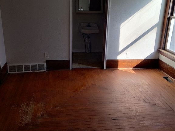 The dining area is spacious with lovely hardwood flooring, perfect for family meals or entertaining. The home also includes an updated bathroom with a tiled floor and a convenient layout.