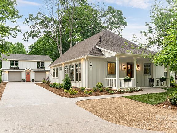 STUNNING NEW CONSTRUCTION WITH CARRIAGE HOUSE IN DOWNTOWN BLACK MOUNTAIN! Thoughtfully designed and built with the highest quality construction and finishes. Main home offers a smart open floor plan with abundant natural light and in-floor radiant heat on the first level. Primary bedroom suite with private bath and WIC on first level. Spectacular kitchen with quartz countertops open to dining and living room with fireplace and modern, monorail staircase. Upper level features an open loft/flex space and private bedroom with ensuite bath. The two-car garage and upper-level 2/1 apartment, originally built in 1940, have been completely redone down to the studs to match the quality and effective age of the main home. Desirable, walkable location in the heart of Historic Black Mountain.