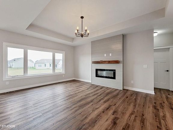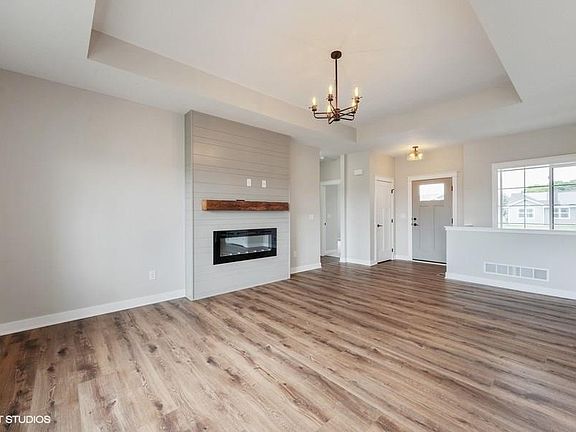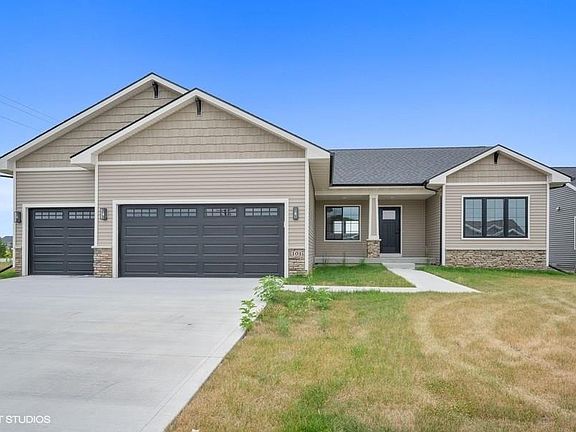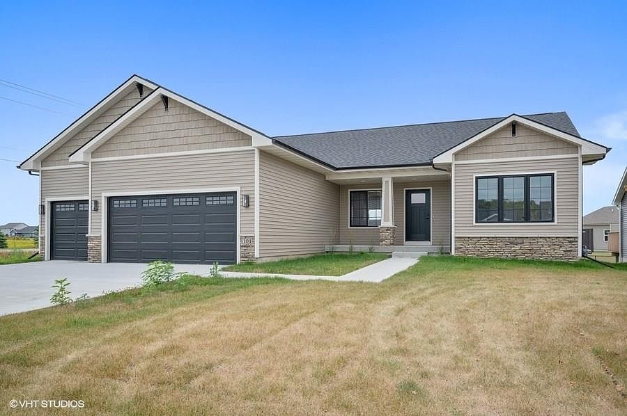 Location, Location, Location. This well thought out ranch plan still has tax abatement and not to mention the excellent location right across the street from Bondurant's Middle/High School. Nearly 1,500 finished sqft showcase designer paint color paired with white base and case. The large great room is open to the dining area. White cabinets complement the quartz counters and stainless appliances. Refrigerator is also included! Retreat to the master suite with a beautiful bathroom tiled shower & raised vanities. The other two bedrooms are on the other end of the home w/guest bath between. Laundry room is off the three car garage and includes the washer and dryer & "locker" with bench to stay organized. Future finish in the lower level can be negotiated into the offer to have it completed prior to closing if desired. Relax on the covered front porch or the deck overlooking the nice sized yard. Welcome to Bondurant!