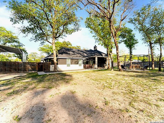 A Very Clean Over 2200sf Ranch Style Rock Hm w/LOTS of Extras' to include a Nearly 1000sf Finished Out Side Entry Garage w/Epoxy flooring,Approx 30x24 Portable pre-fab carport...2-Fireplaces & Firepit Patio w/Concrete landing & entry sidewalk from the Covered Patio...ALL on a Mostly Landscaped & Privacy Fenced 1-Acre Corner Lot w/trees in the Popular Cibolo Ridge Subd that has No City Taxes & Low 1.7% Tax Rate in the sought after La Vernia ISD,Wilson County....HM has a "Very Open Floorplan" w/Lots of Windows to include Upper Transoms for Natural Lighting,Wood looking Ceramic tile Plank Flooring "Thru-Out,..Custom Window Coverings..,8' Tall Doors...,Arched Openings...4-BD & 3-BA (Split Bd plan) **1 of the 4 BD's has it's own Bathroom & Walk-in Closet** Spacious Kit w/U-Shaped & Rocked B'Fast Bar..Blt in Samsung Appliances...DBL Ovens..Smooth Finish Cooktop...Pot Filler...Convection Microwave...Side x Side Frig w/Extras' & Walk in Pantry......KIT Overlooks Living Area that has Rocked Corner Fireplace,Raised Deco Ceiling w/Crown Molding & Dining area that also has Deco Ceiling w/Crown...Laundry Room has Lower & Upper Storage Cabinets...Approx 16x'14' Covered Patio/Outdoor Living Area has Ceramic Tiled Flooring,Wood Burning Fireplace,TV Connections,Deco Ceiling AND walkway that leads to the Firepit Patio...HM also has Fiber Internet...Custom Window Coverings...Water Softener...Central Whole House Vac Unit...Sec Sys & Partial Rain Gutters...Again Very Clean 1-Owner Hm that Displays a *Ton of TLC Thru-Out*...Come Out and Take a Look !!!