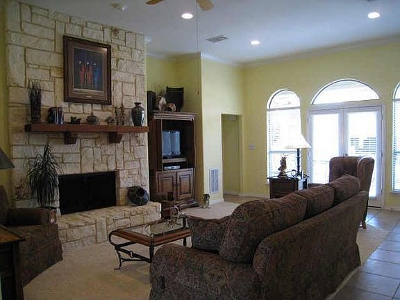 Incredible custom home on prof. landscaped .4999 acre lot with lake view! Curb appeal is Hill Country Extraordinaire with stone elevation, large covered front porch. Freshly painted interior. Immaculate & prof. decorated interior with stone fireplace, crown moulding, tall ceilings, lots of light, open floor plan, split bedrooms & 3 living areas (media & half bath up). 3 full & 2 half baths! Master suite has door to partially covered patio. Brokered And Advertised By: EBBY HALLI