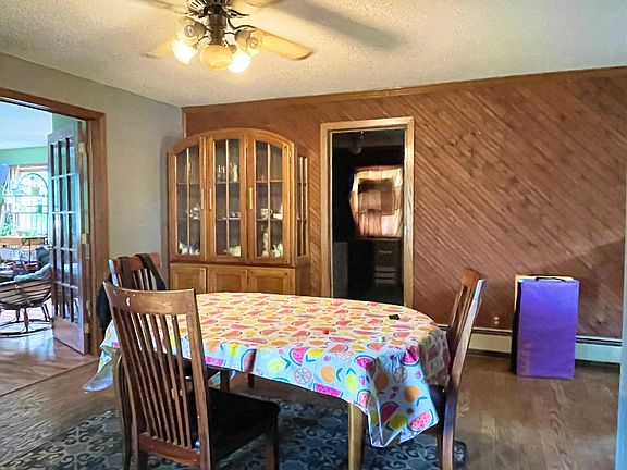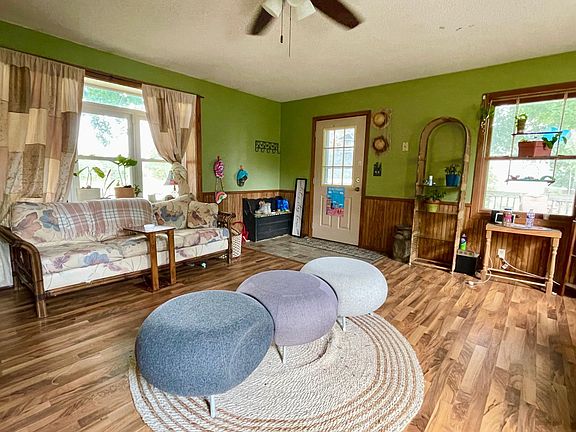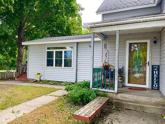 Welcome to this delightful two-story home that combines charm and comfort. As you step onto the covered front porch, you'll be greeted by a dining room with beautiful wood floors that can easily accommodate a table for eight. Through the elegant glass French doors is the spacious living room, complete with a cozy fireplace for those chilly Minnesota winter nights. This area also features a storage closet and a door that leads out to the side deck. The main floor boasts an inviting owner's suite, a convenient laundry room, and a 3/4 bathroom. The kitchen is equipped with plenty of cabinets and a patio door that opens up to a future deck. Moving on to the upper level, you'll find two sizable bedrooms and a full bathroom with dual sinks. Exterior boasts detached 2 stall garage, oversized shop, kids playhouse/storage, fenced yard and playset. You will love to make this home yours!