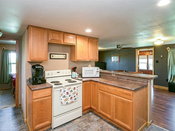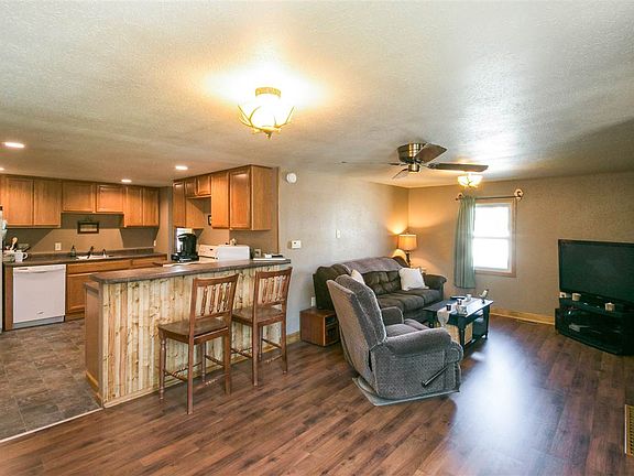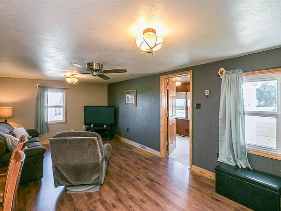 Situated on the edge of town is this adorable home that is loaded with charm and many improvements in this 2 bedroom, 1 bath home and with a great usable yard. Recently remodeled kitchen in 2015 with a spacious breakfast far and detailed barn bead underneath, all kitchen appliances staying, formal dining room area and living room combo with new rich dark laminate hardwood floors; detailed antique glass knobs in the bathroom; knotty pine bedroom; cozy 3-seasons porch; and spacious master bedroom.
